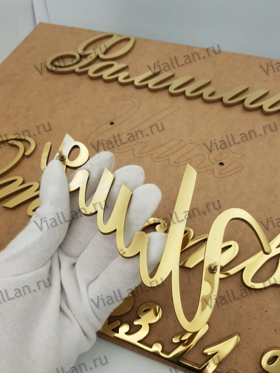 Лазерная резка позволяет создавать изящные курсивные шрифты и целые фразы прописью.