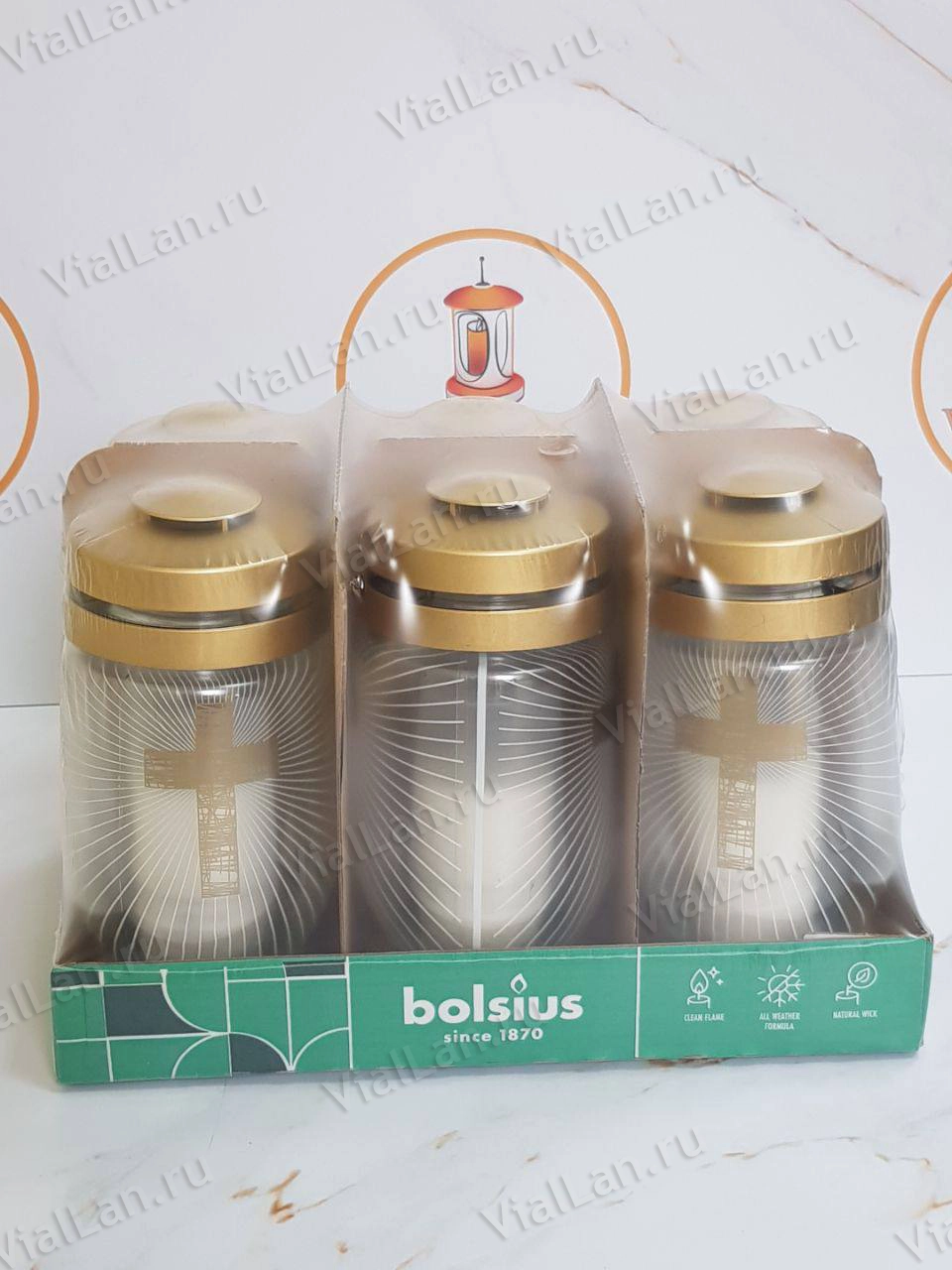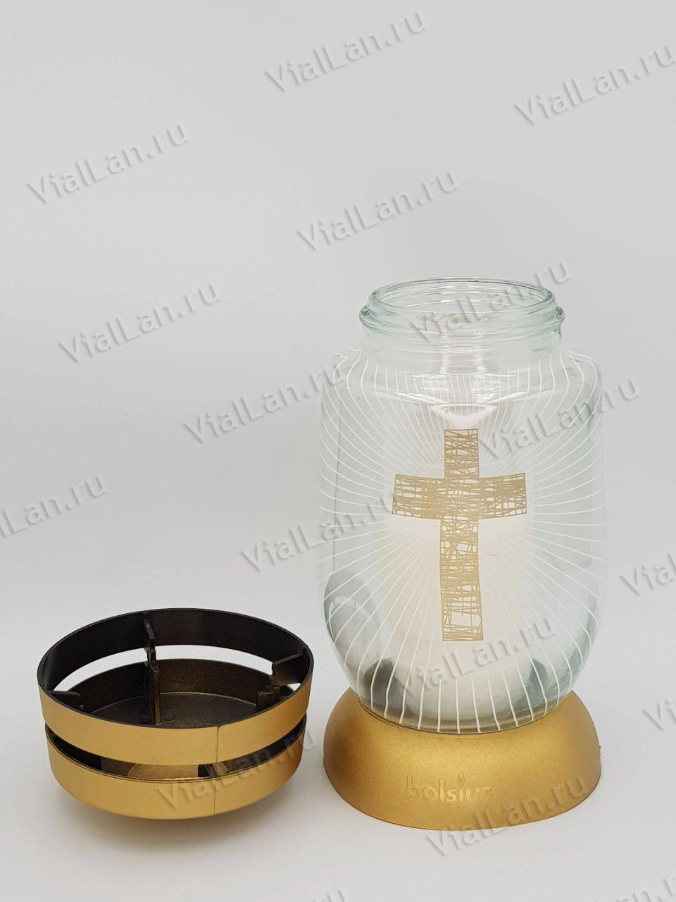 —Лампада стеклянная 3S 04 Kryz Bolsius (25*10*10, материал Пластик+Стекло, цвет золото) в упаковке 6 штук арт:1912