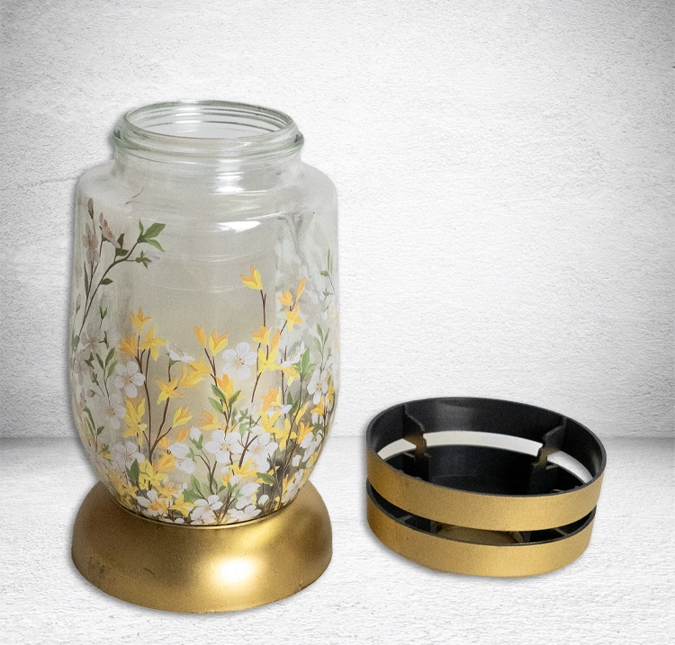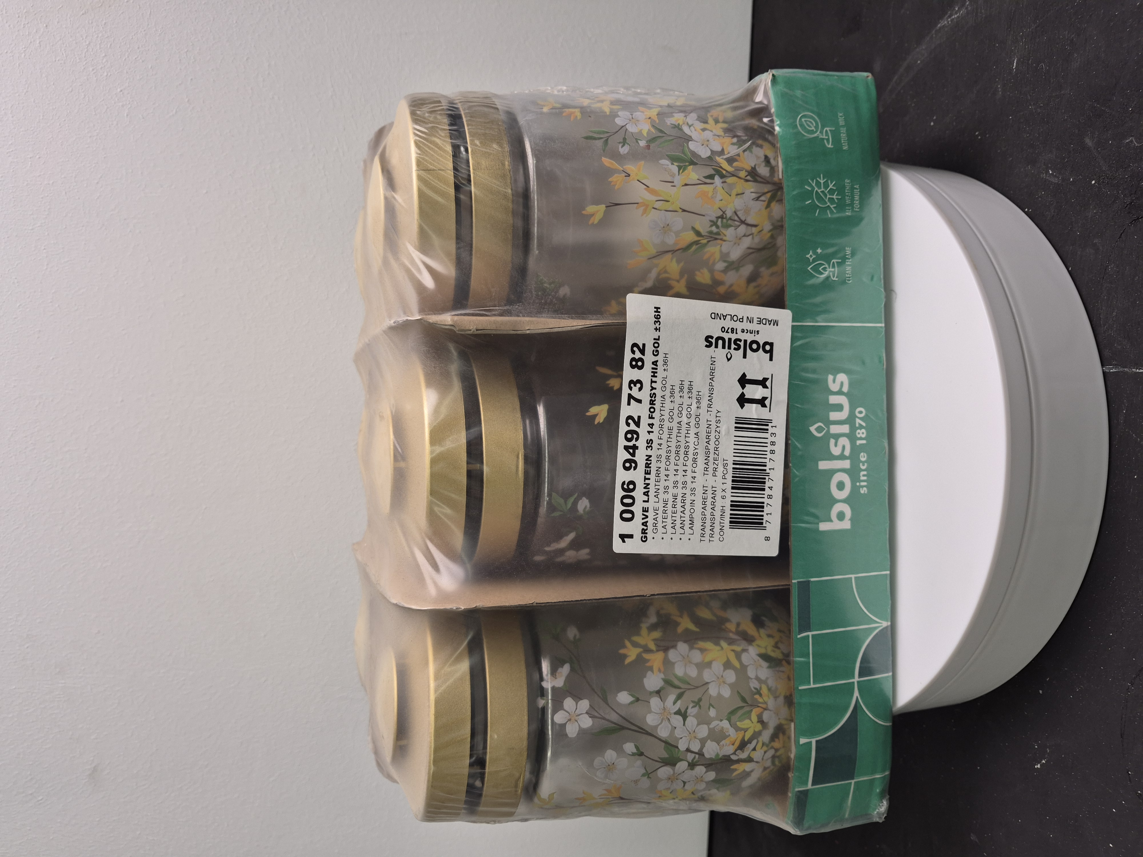 —Лампада Стеклянная Цветы Bolsius (размер 21*11 см, корпус цилиндрический, колба стекло, пластик золото, принт Цветы, в упаковке 6 шт.) арт:2499