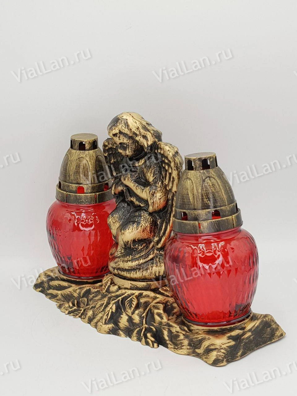 Лампада Стеклянная Ангел 2 лампады (размер 27х20х11, корпус фигурный, колба красное стекло, пластик бронза, Ангел, лампада х2, в упаковке 1 шт.) арт:2060