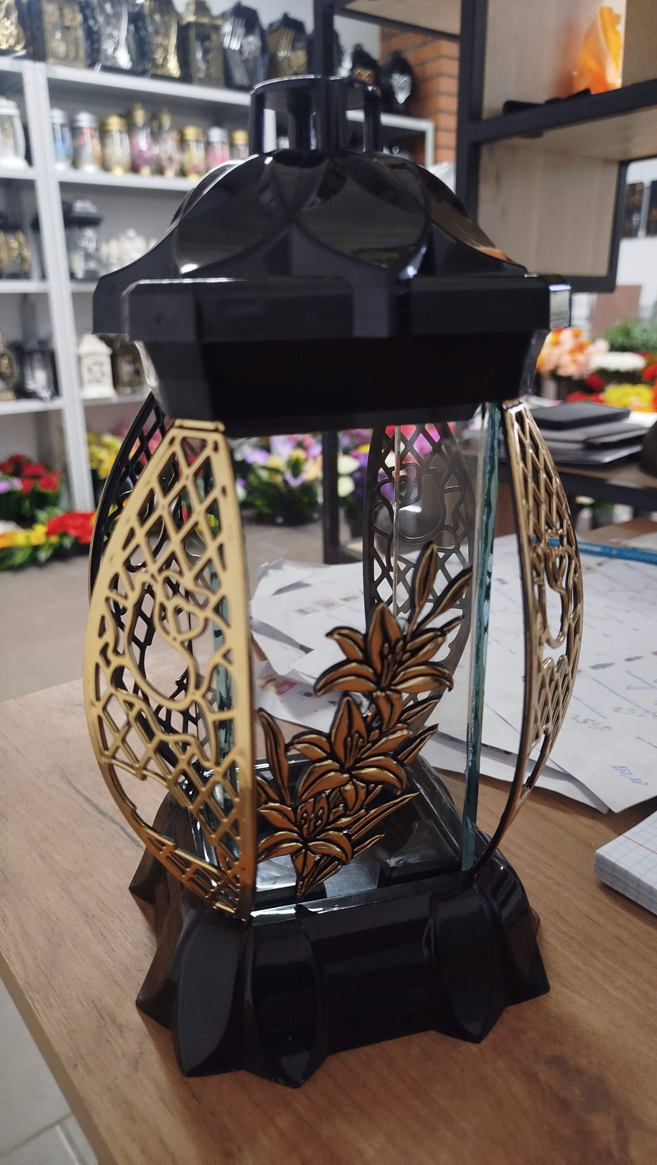 —Лампада стеклянная Лилия золото KWIAT (размер 26х12х12, корпус прямоугольный, колба плоское прозрачное стекло, пластик черный, Лилия золото, в упаковке 6 шт.) арт:2531
