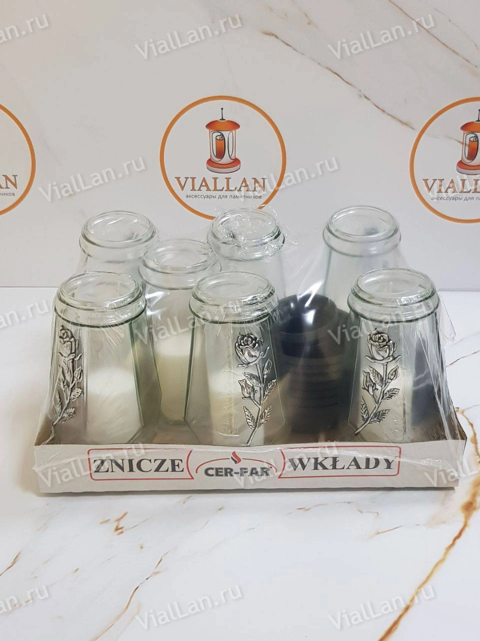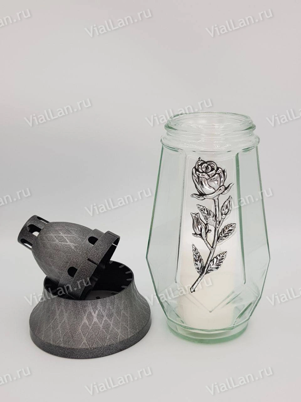 —Лампада стеклянная Роза Ветка серебро GER-FAR (размер ""х""х"", корпус Свеча, колба прозрачное стекло, пластик серебро, роза серебро, в упаковке 7 шт.)арт:1901