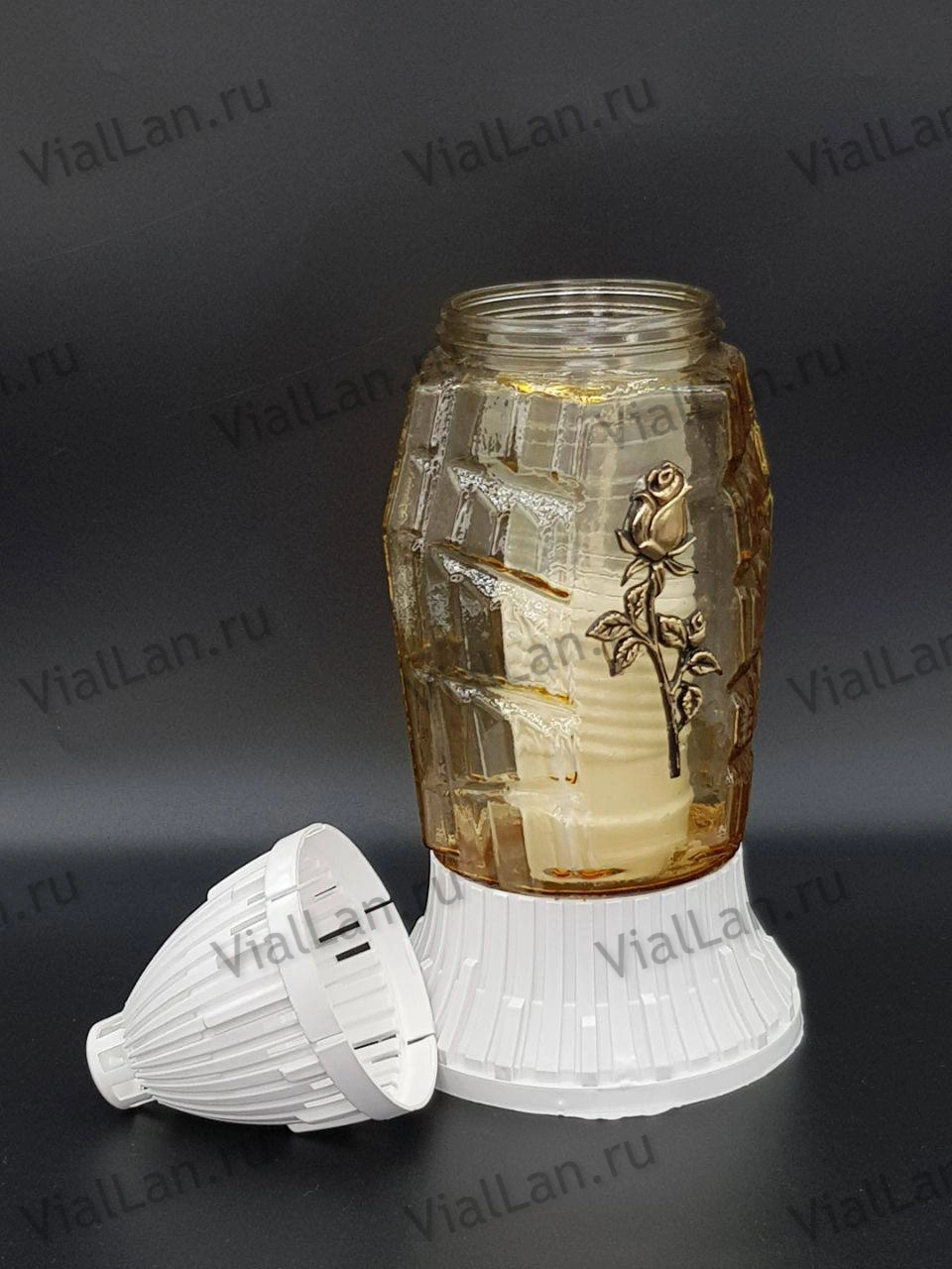 —Лампада стеклянная Роза 1 Znicz (размер ""х""х"", корпус прямоугольный, колба желтое стекло, пластик белый, Роза золото, в упаковке 8 шт.) арт:1963