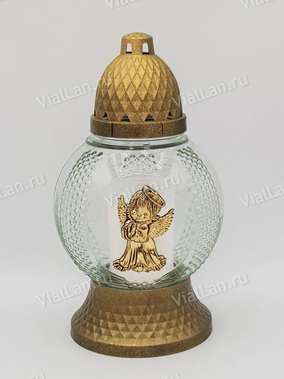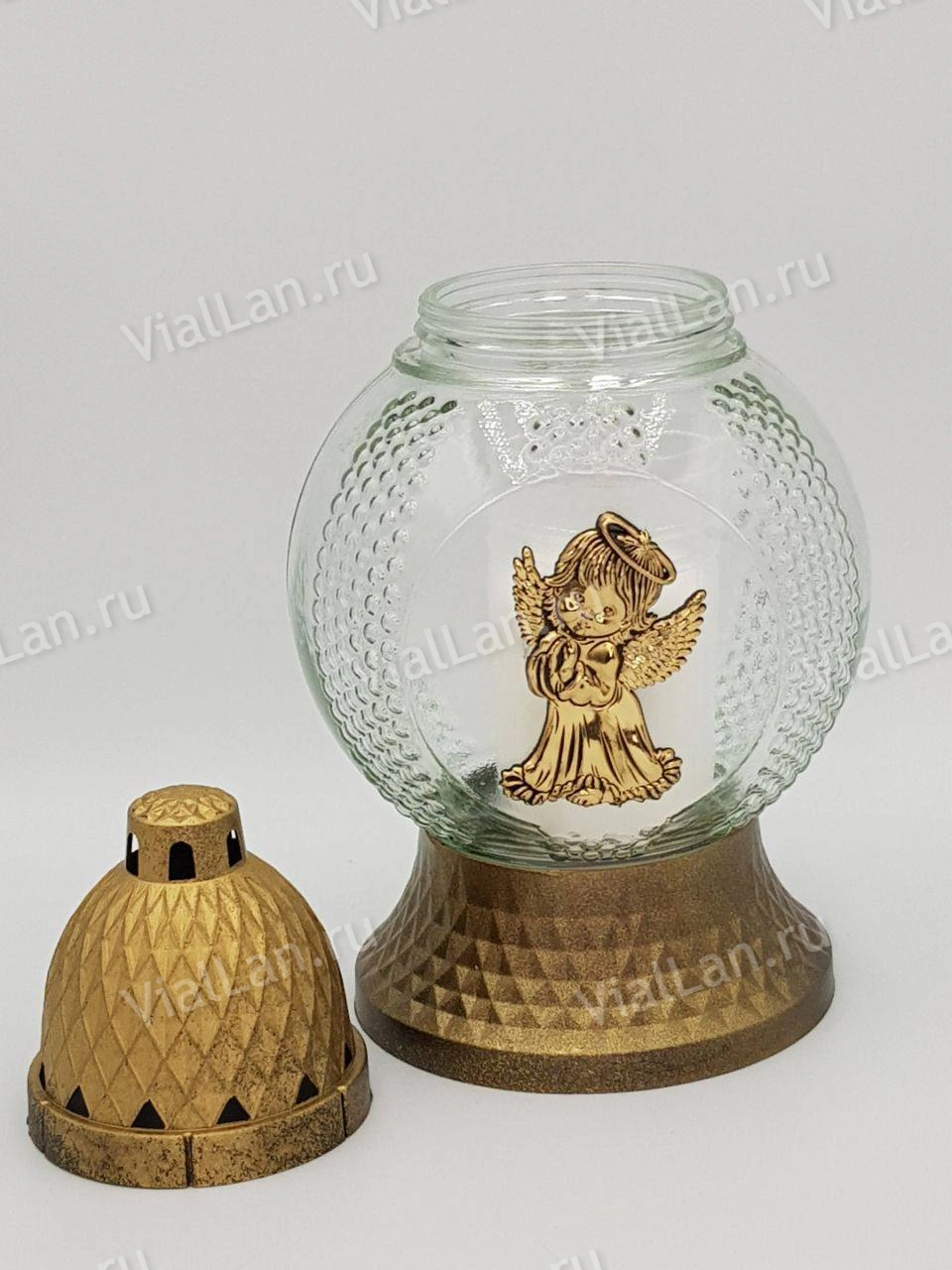 —Лампада стеклянная Шар Ангел (размер ""х""х"", корпус шаровидный, колба прозрачное стекло, пластик бронза, Ангел золото, в упаковке 6 шт.) арт:1968