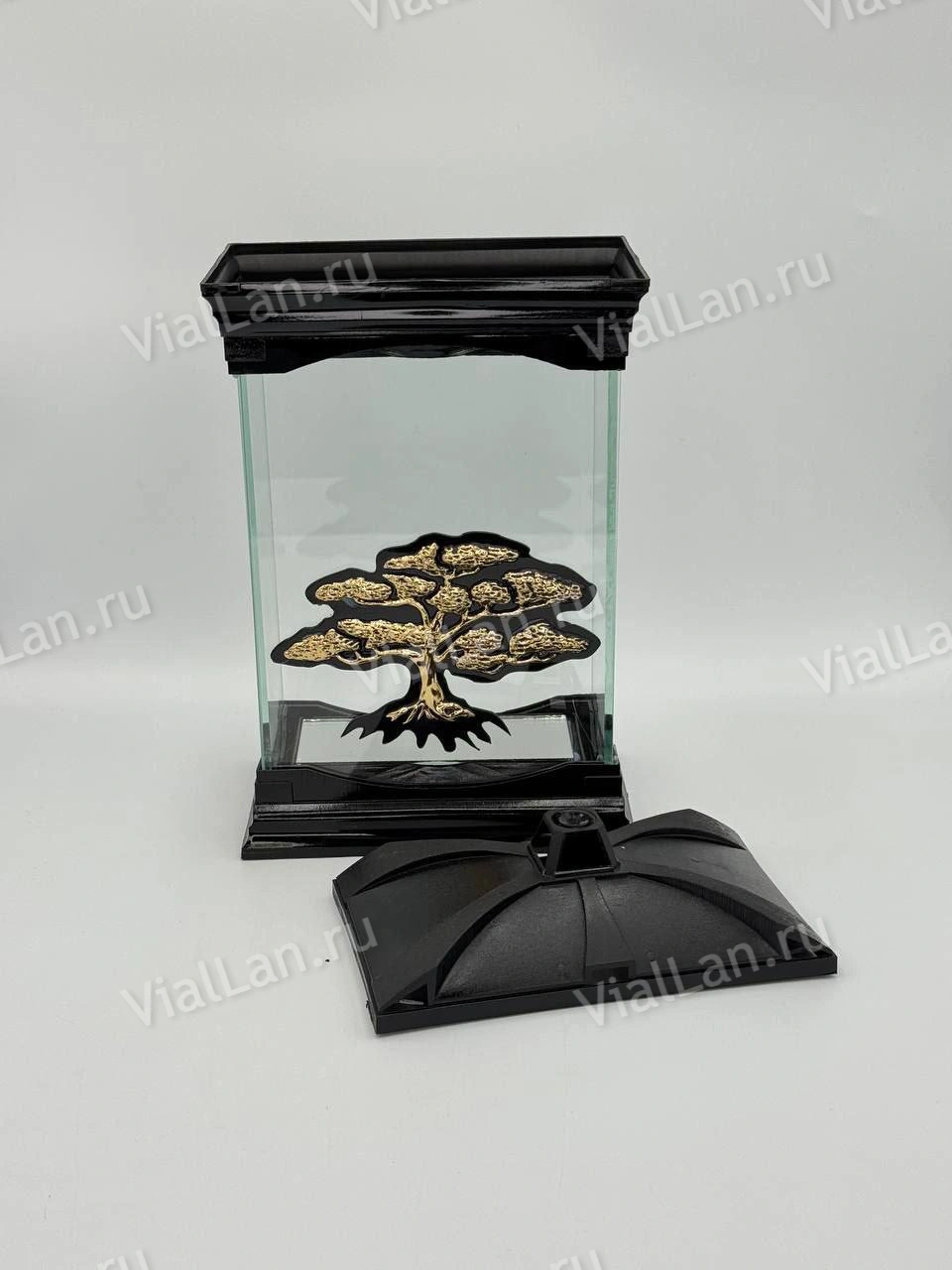 —Лампада стеклянная Дерево SZKATULA (30*17*10, корпус прямоугольный, колба плоское прозрачное стекло, пластик черный, Дерево, цвет золото, в упаковке 5 шт.) арт:1978