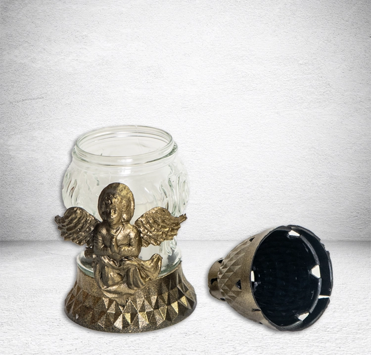—Лампада стеклянная Ангелок Бронза (размер 16х8, корпус овал, колба прозрачное стекло, пластик бронза, Ангел бронза, в упаковке 11 шт.) арт:2526
