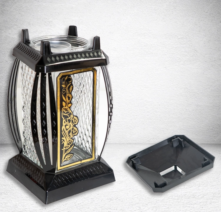 Лампада стеклянная Роза Вьюн Prima 11 (29*14*14, корпус прямоугольный, колба прозрачное стекло, пластик черный, Роза вьюн, цвет золото, в упаковке 6 шт.) арт:1855