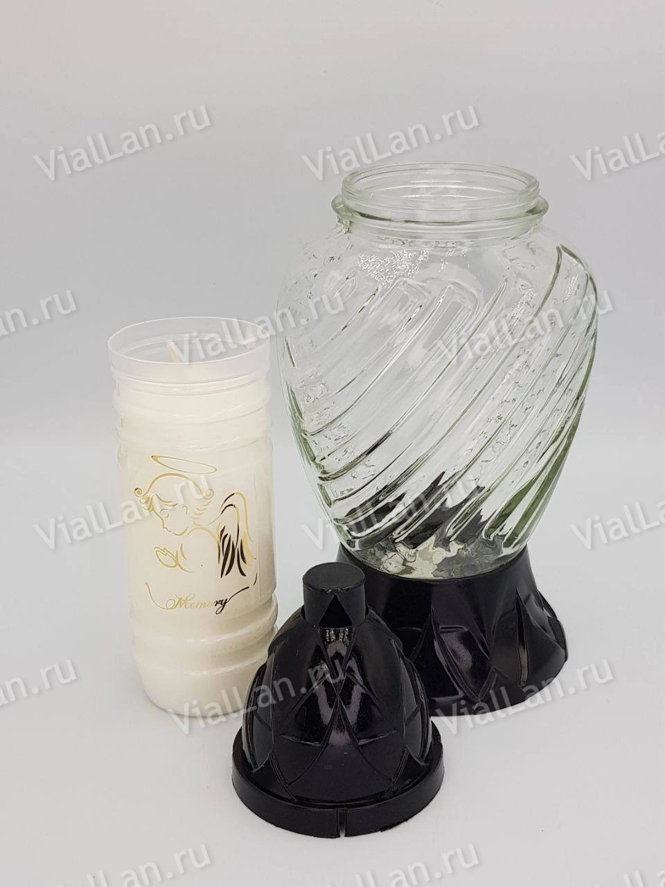 —Лампада Стеклянная Линии Znicz (колба овал, прозрачное стекло, пластик черный, линии, в упаковке 8 шт.) арт:2052