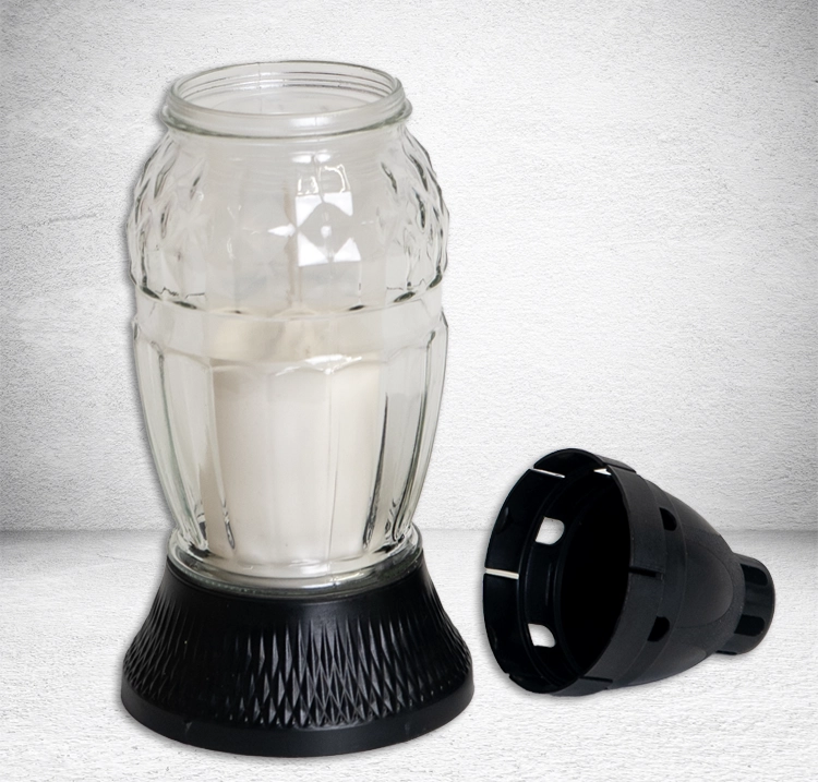 —Лампада стеклянная Белая Znicz (размер 26х9, корпус Овал, колба прозрачное стекло, пластик черный, в упаковке 12 шт.) арт:2516