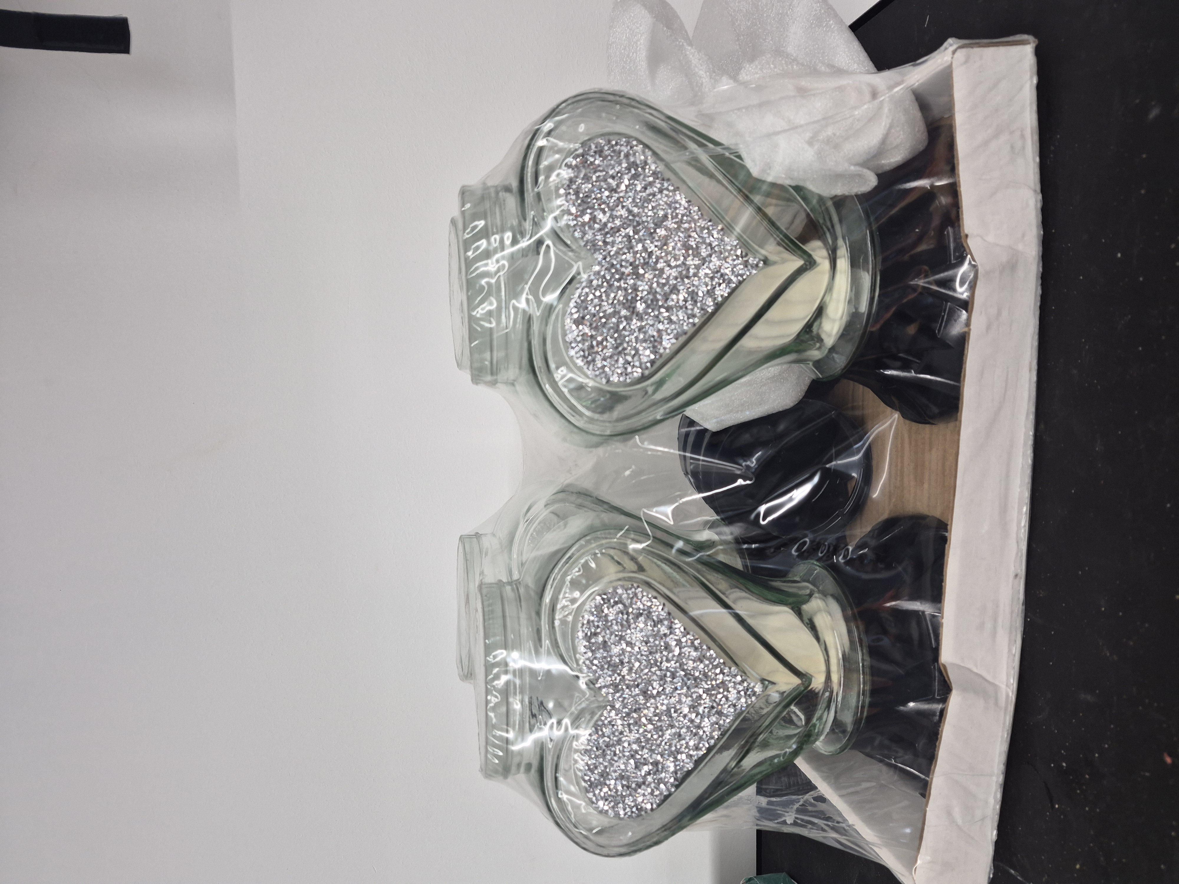 —Лампада стеклянная Сердце блестки серебро Znicz (размер 33*15*15 см, корпус Сердце, колба прозрачное стекло, пластик черный, Сердце, Блестки, цвет Серебро, в упаковке 4 шт.) арт:2566