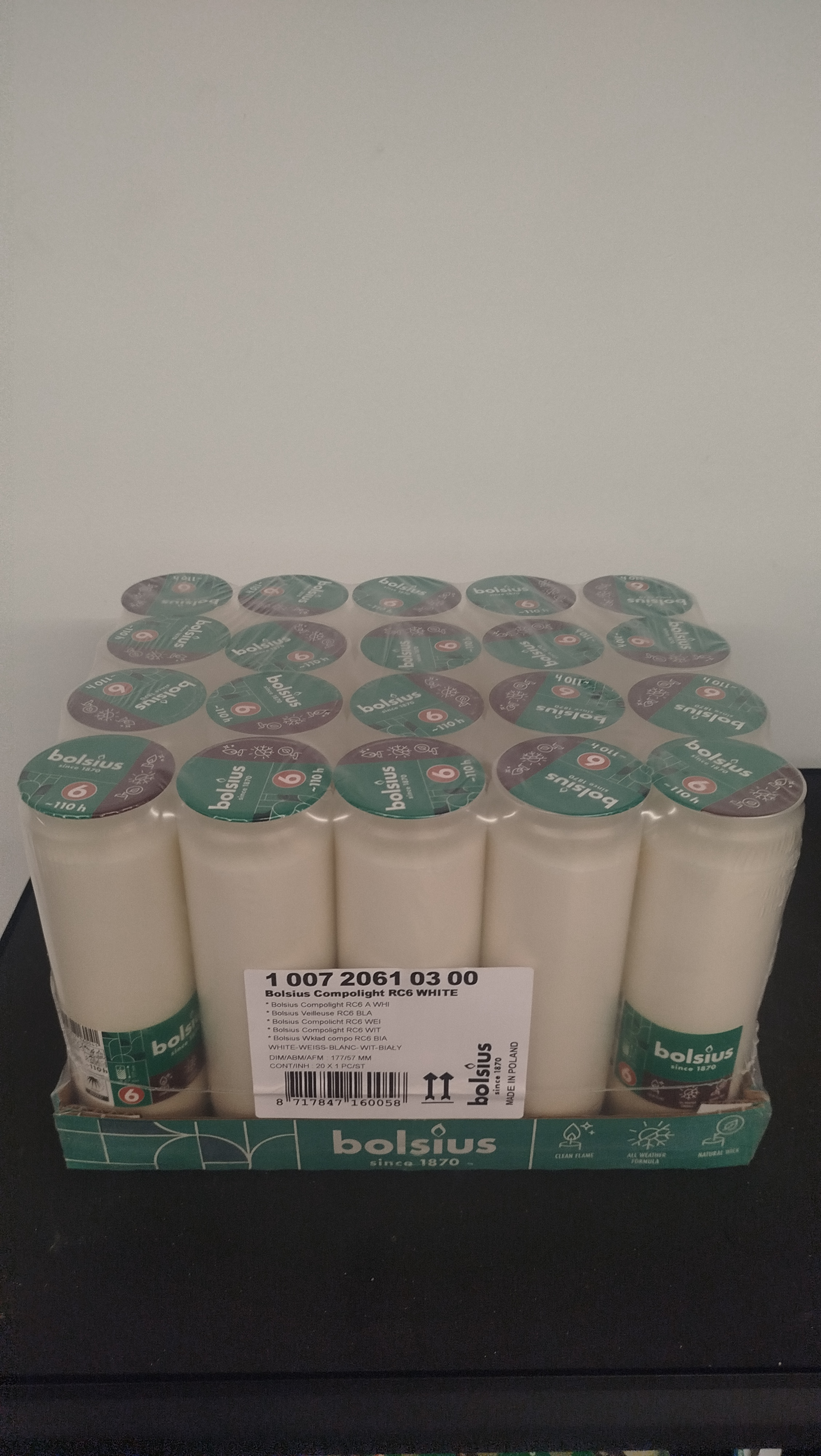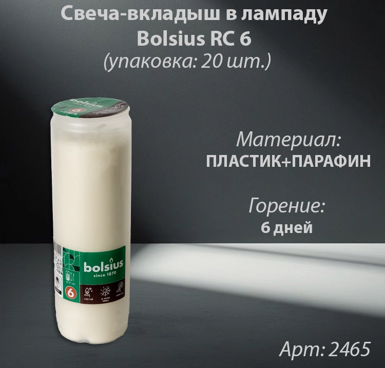 —Свеча вкладыш в лампаду Bolsius RC 6 (горение 6 дней, цвет белый, материал Парафин) в упаковке 20 штук арт:2465