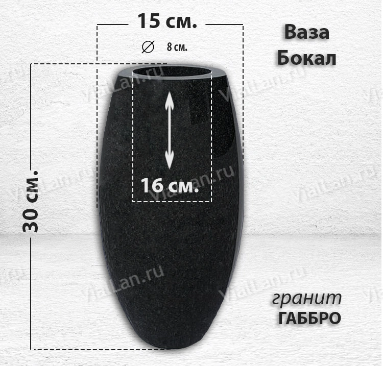 Ваза БОКАЛ (30*15, гранит Габбро) арт:1618